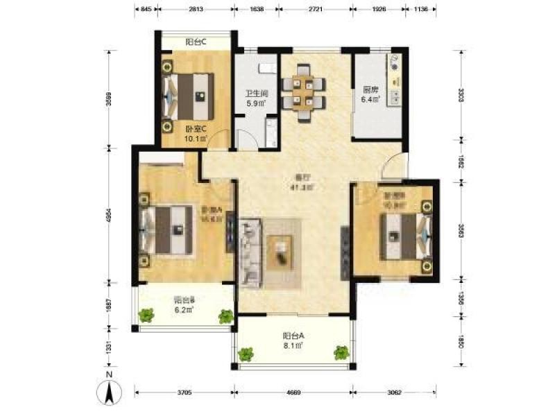 3室2厅1卫113平米