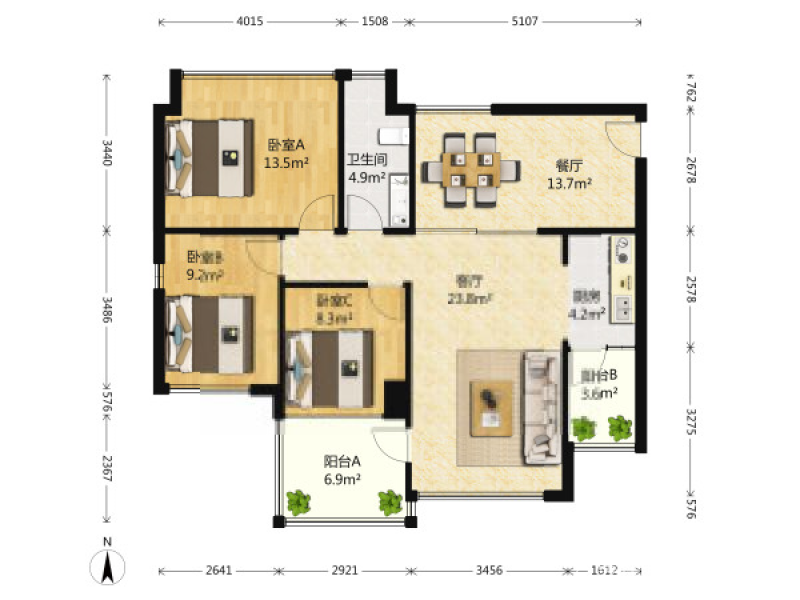 3室2厅1卫114平米