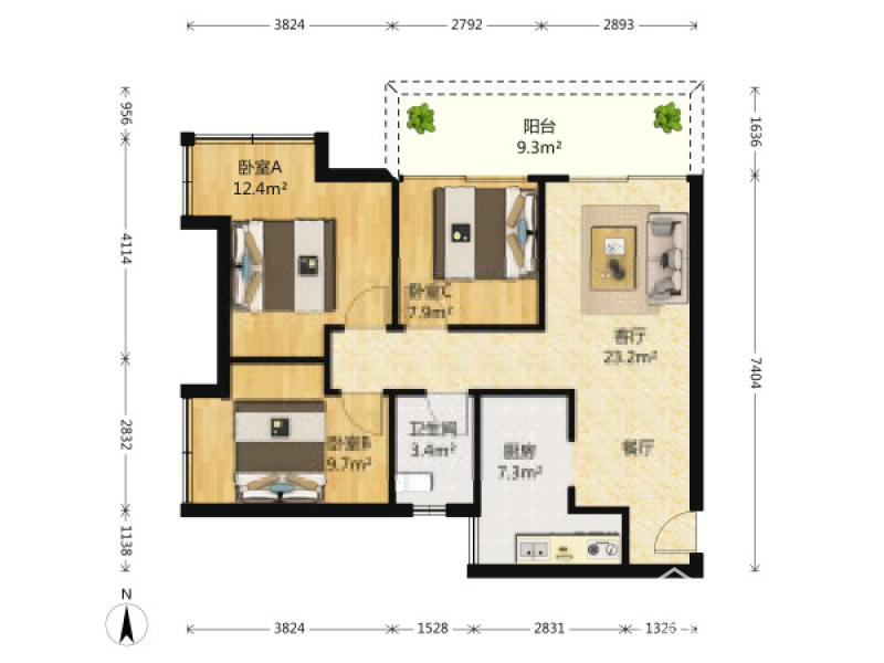 3室2厅2卫96平米